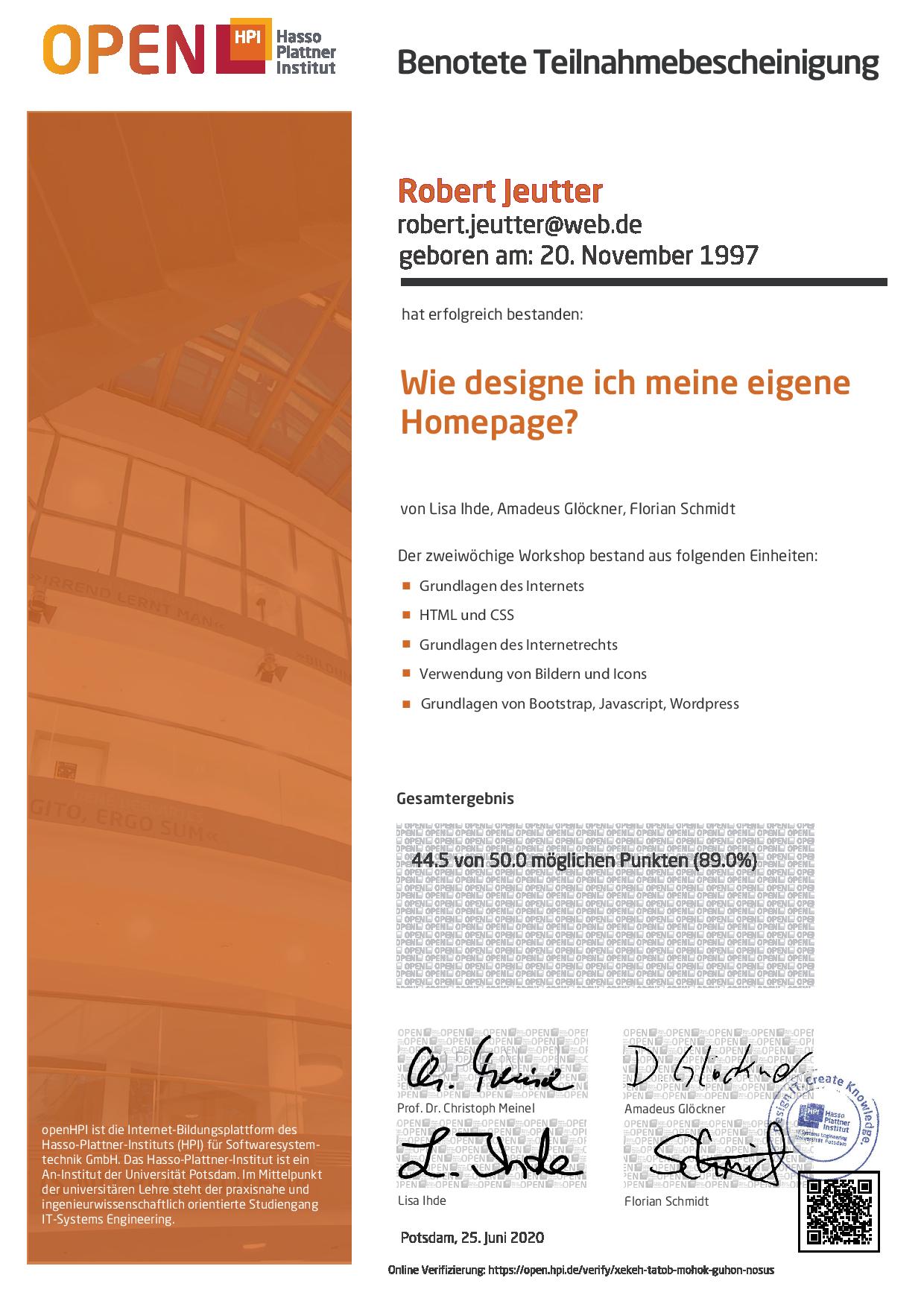 added openHPI certificates